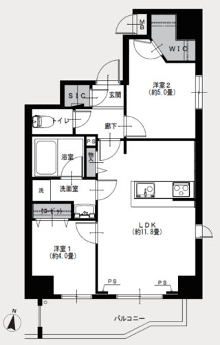 2LDK + WIC+SIC/50.16㎡