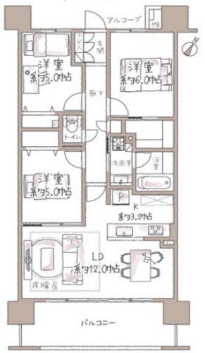 | 間取り | 3LDK + WIC | 方角 | 南東 |