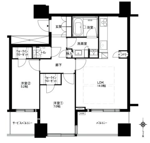 | 間取り | 2LDK + 2WIC | 方角 | 北 |
