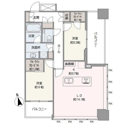 | 間取り | 2LDK + 2WIC | 方角 | 南 |
