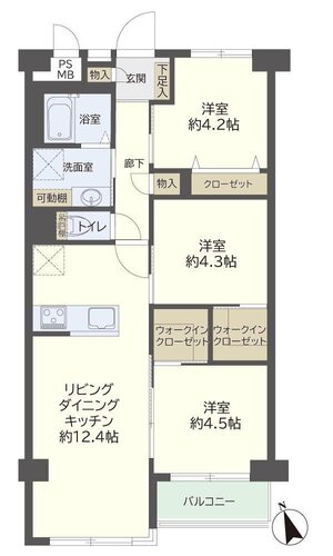 | 間取り | 3LDK + WIC | 方角 | 南西 |