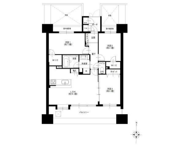 3LDK + 2WIC/71.4㎡