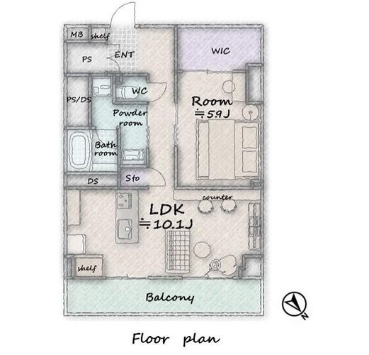 | 間取り | 1LDK + WIC | 方角 | 北東 |