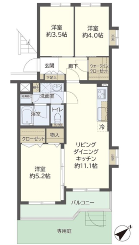 | 間取り | 3LDK + 専用庭 | 方角 | 南東 |