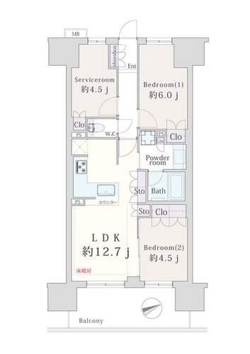 2LDK + S(納戸)/62.1㎡
