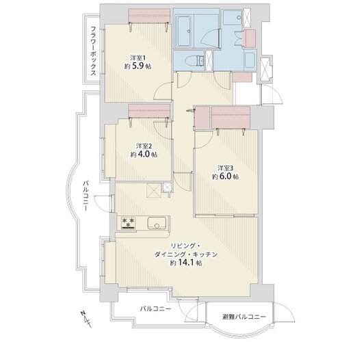 | 位置 | 角部屋 | 部屋 | 全居室フローリング |
