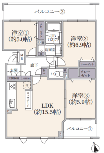 | 位置 | 角部屋 | 部屋 | LDK15畳以上 / 全居室フローリング |