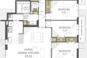 | 専有面積 | 壁芯 95.79㎡ | バルコニー面積 | 6.8㎡ |