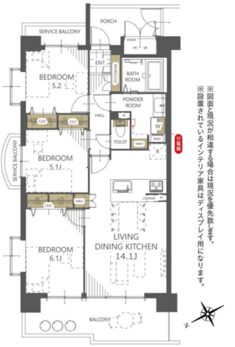 | 位置 | 角部屋 | 部屋 | 全居室フローリング |