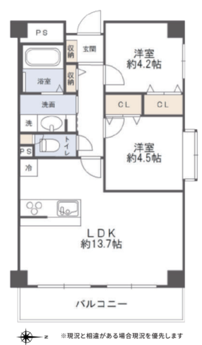 | 間取り | 2LDK | 方角 | 東 |