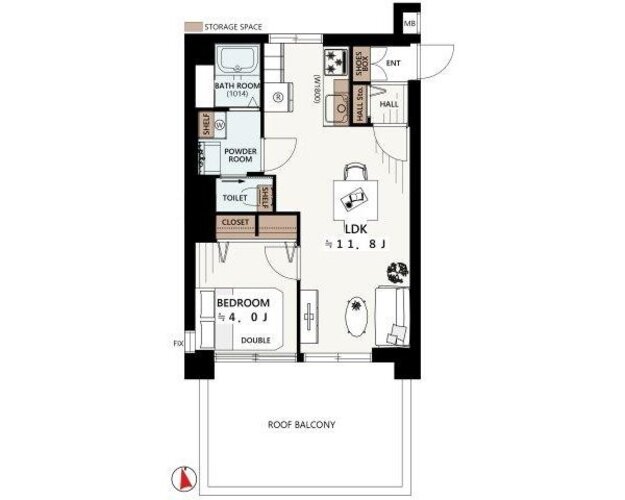 1LDK + ルーフバルコニー/34.75㎡