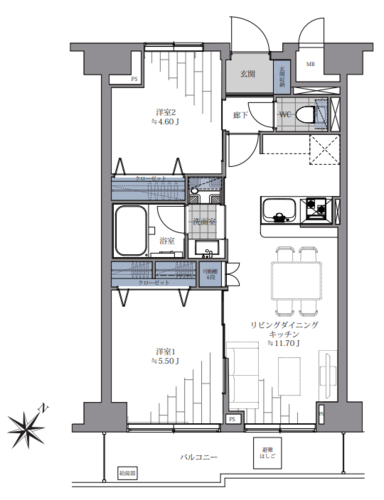 | 間取り | 2LDK | 方角 | 南東 |