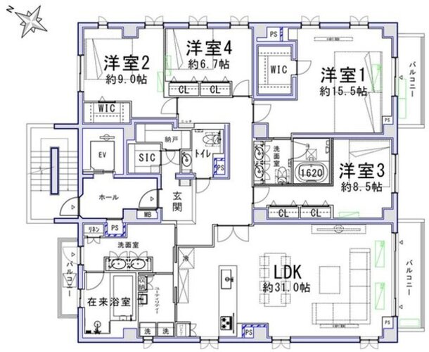 | 専有面積 | 壁芯 184.62㎡ | バルコニー面積 | 15.08㎡ |