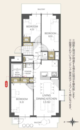 | 専有面積 | 壁芯 66.16㎡ | バルコニー面積 | 14.05㎡ |
