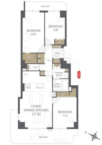 | 専有面積 | 壁芯 89.64㎡ | バルコニー面積 | 22.12㎡ |
