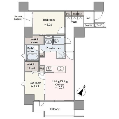 | 間取り | 2LDK + 2WIC | 方角 | 南東 |