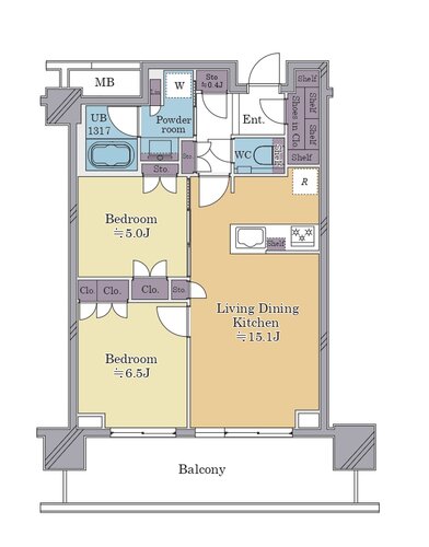 | 専有面積 | 壁芯 61.34㎡ | バルコニー面積 | 14.53㎡ |