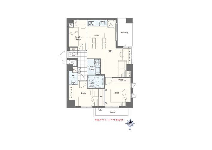 | 専有面積 | 壁芯 59.28㎡ | バルコニー面積 | 8.6㎡ |