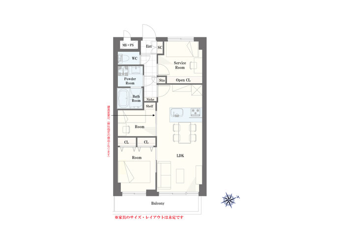 | 専有面積 | 壁芯 58.0㎡ | バルコニー面積 | 6.96㎡ |