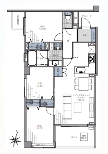 | 浴室・トイレ・洗面所 | 浴室乾燥機 / 追い焚き | バルコニー | バルコニー(奥行き2m以上) |