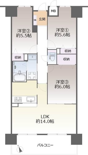 | 間取り | 3LDK | 方角 | 南西 |