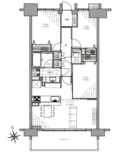 | 間取り | 3LDK | 方角 | 南西 |