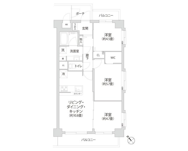 3LDK + WIC/58.0㎡