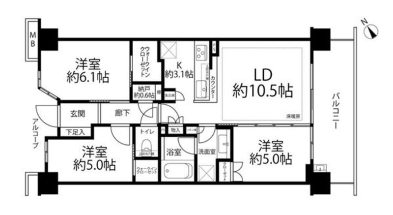| 間取り | 3LDK + W | 方角 | 南東 |
