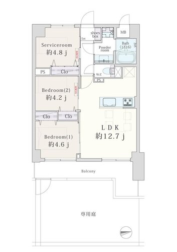 | 間取り | 2LDK + 専用庭 | 方角 | 東 |