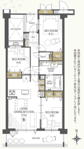 | 専有面積 | 壁芯 65.53㎡ | バルコニー面積 | 10.37㎡ |